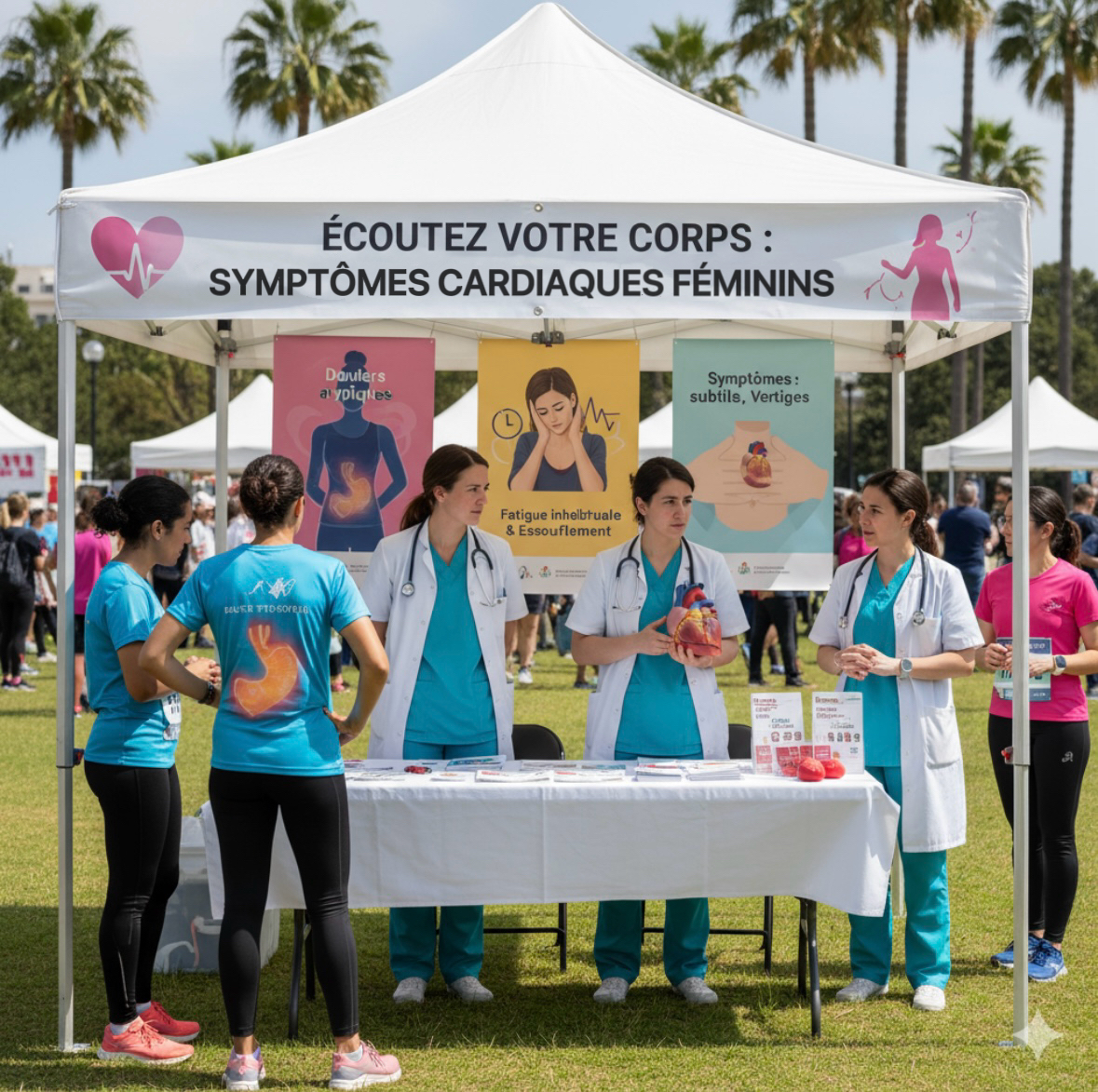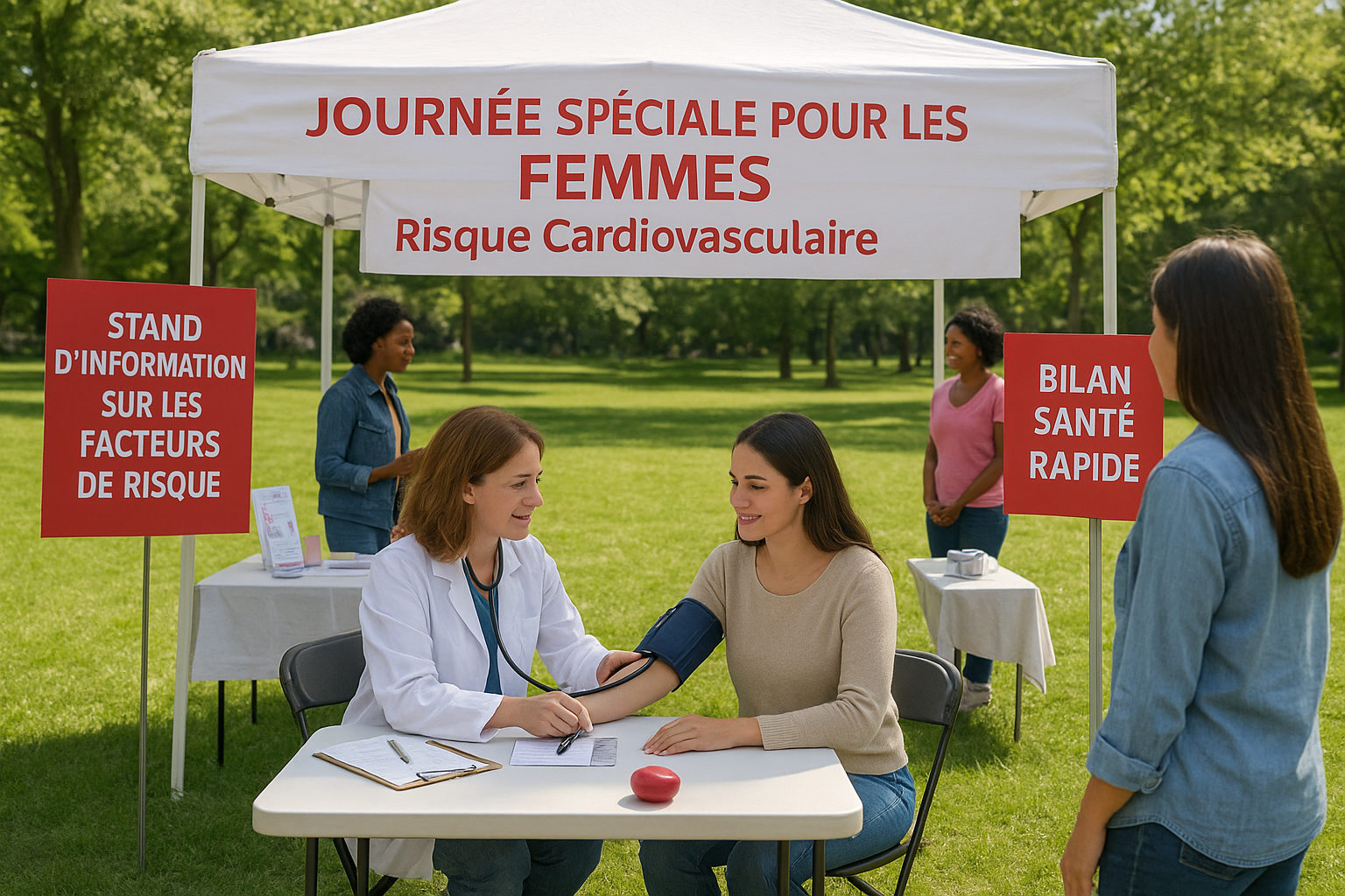 Contenu : panneaux et brochures expliquant le rôle du stress, du tabac, de la contraception hormonale, de la ménopause, du manque d'activité physique…